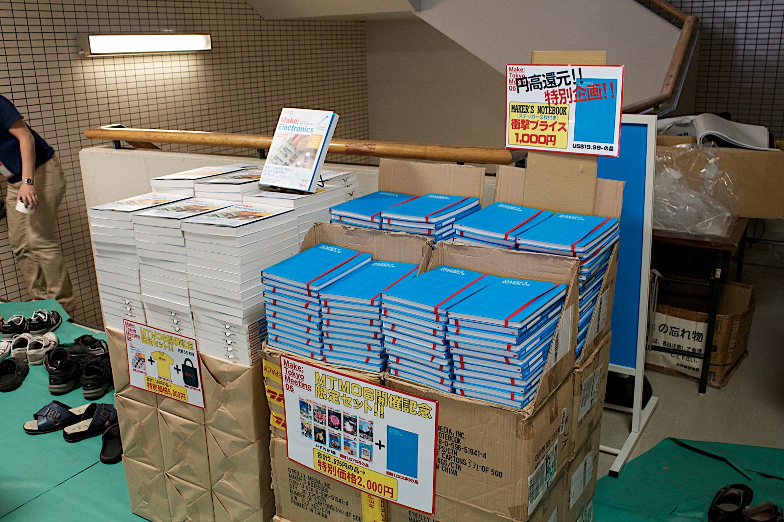 入り口付近では、オライリーさんがMake限定モノスキンや関連本、Tシャツなどを販売されていました。